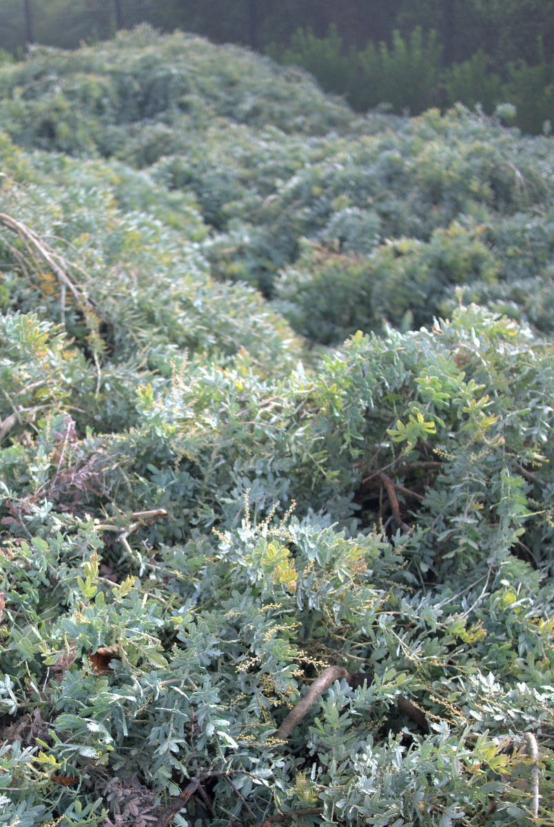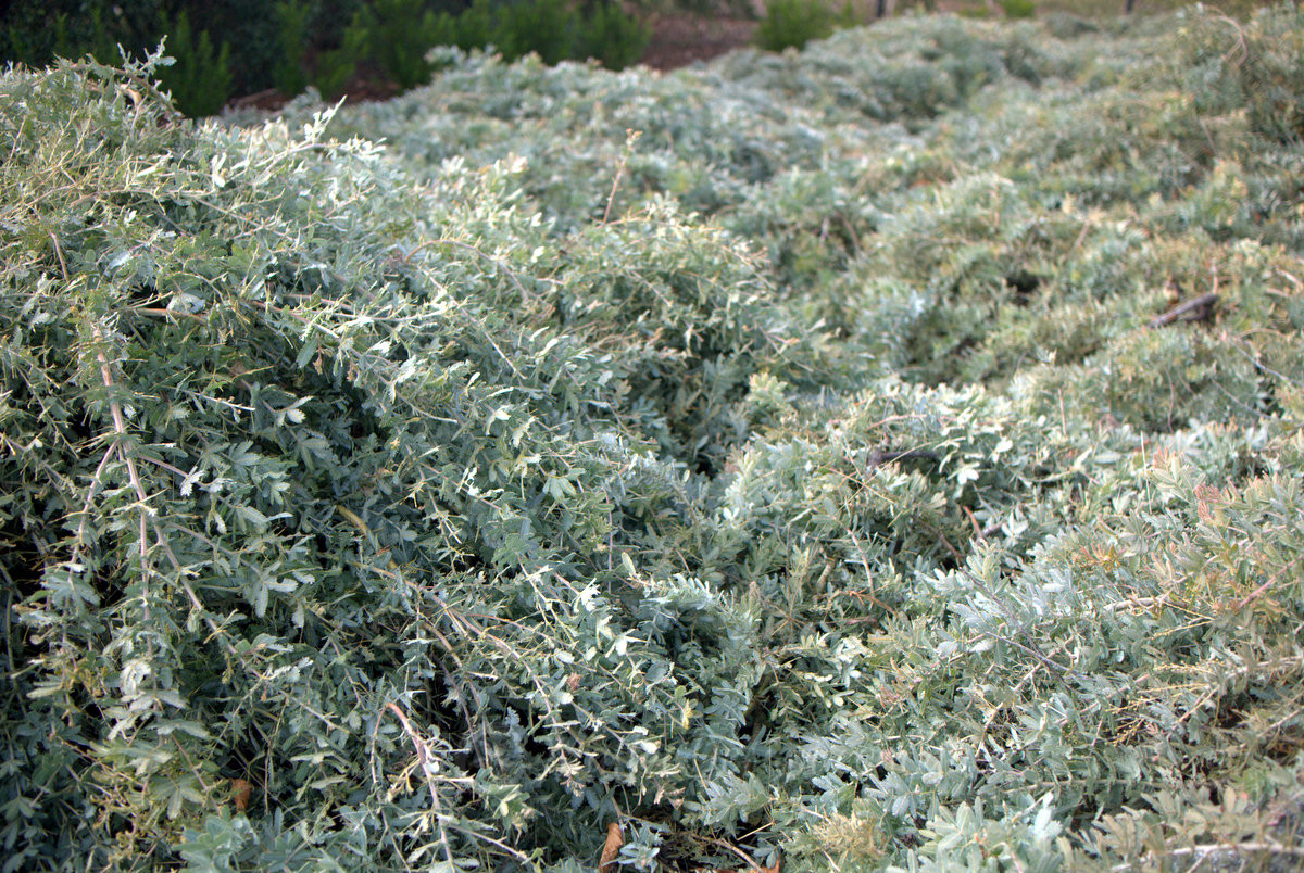 The images above and below were taken at the Canberra Aboretum where they have used Acacia baileyana Prostrate as a mass planting also a dry creek bed next to a carpark. It has created a sea of soft grey undulating foliage and looks wonderful. It also shows what a tough plant it truly is.