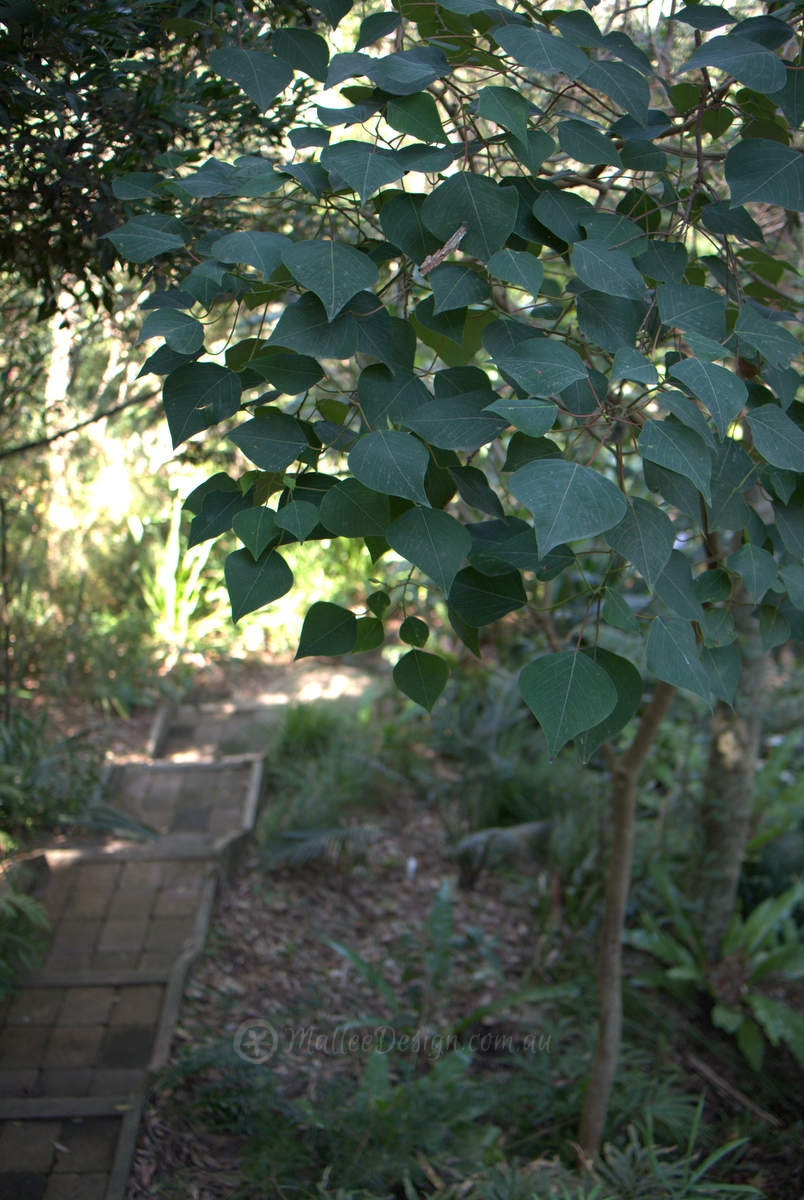 But the main thing that made this garden come together for me was the repetition of plants, giving unity and making it a peaceful place to stroll and relax. The Omalanthus popufolius below popped its head up often as it made its way to the upper storey.