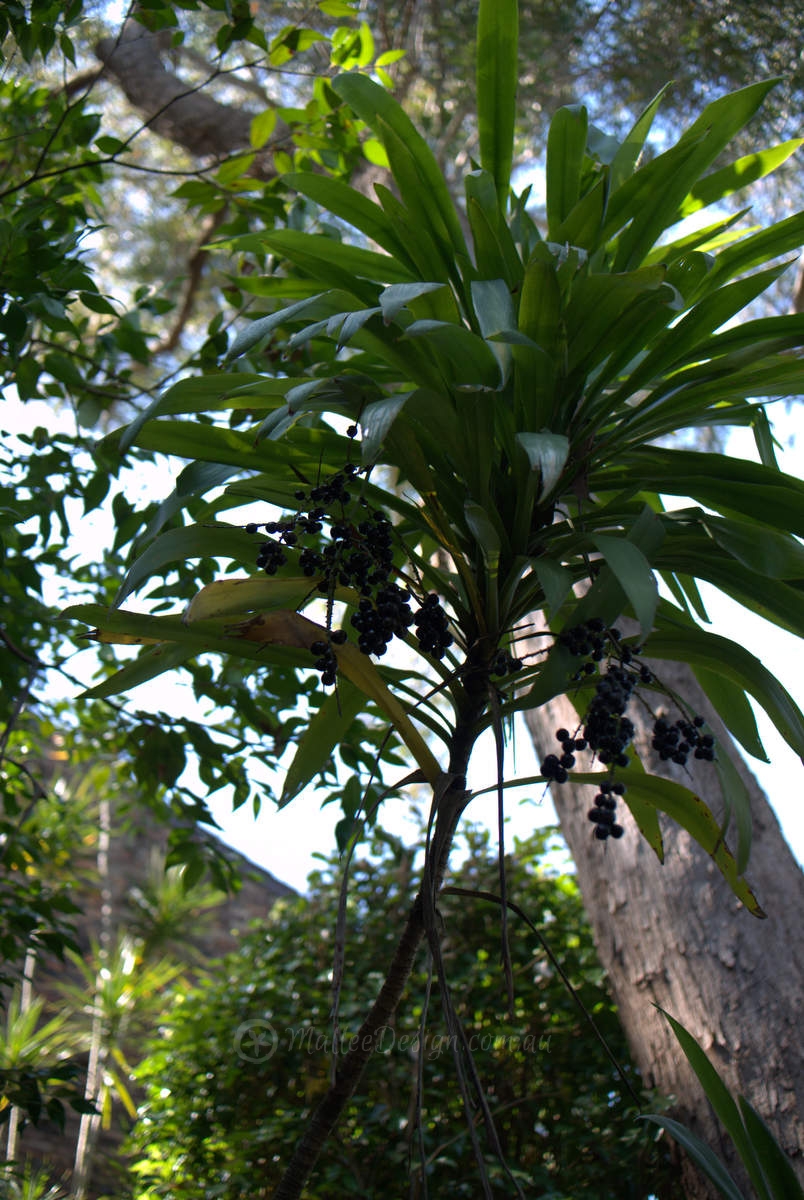 These decorative fruits from Cordyline petiolaris (the red)and Cordyline stricta (the purple) made an un-expeceted feature.