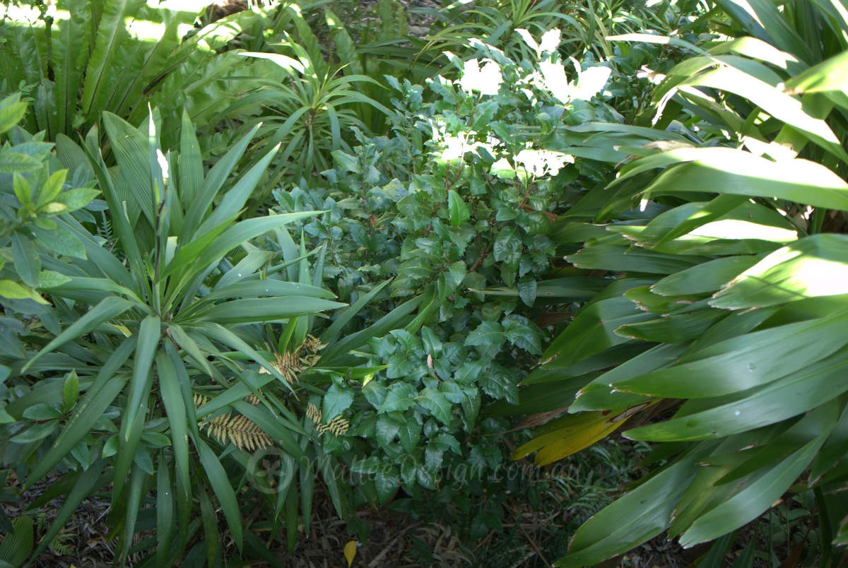 There was plenty of diversity in the foliage, with weeping contrasting with upright and fine with broad, I’m sure it was all planned that way! Below you can see the two different species of Cordylines with the Graptophyllum ilicifolium in the middle and a clump of Asplenium nidus behind.
