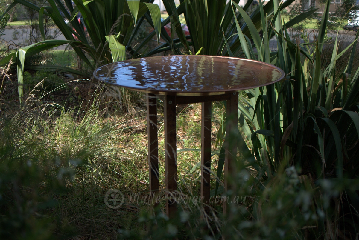 What results is the appearance of a sparkling floating dish (depending on the extent of oxidation on the copper) that invites and serves your local indigenous fauna to feast and play within your garden’s confines. (note: written by Etienne)