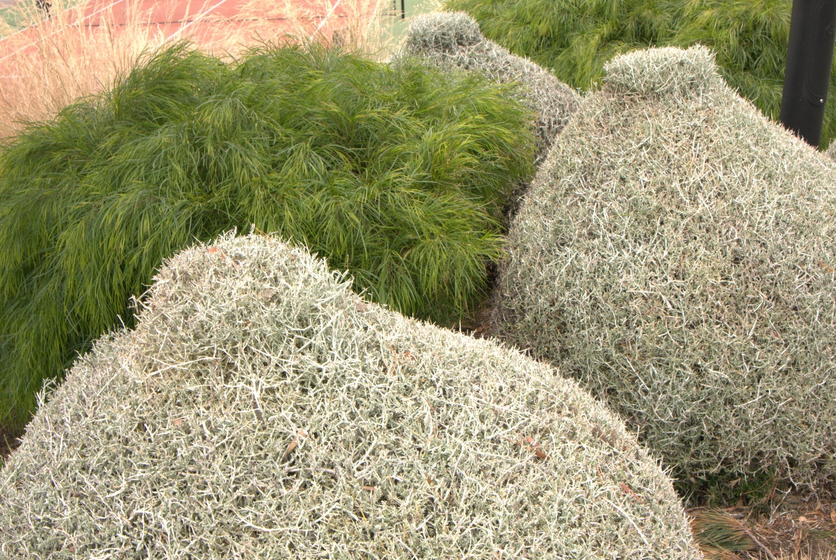 I am in Tasmania driving around and camping and visiting family, its my home town. Of course we have paid our obligatory visit to MONA which in my humble opinion has the, most beautiful native gardens, they are modern and playful, hence the Leucophyta brownii pruned into breast shapes heehee…..Cushion bush prunes beautifully into spheres or mounds or well whatever you like really.