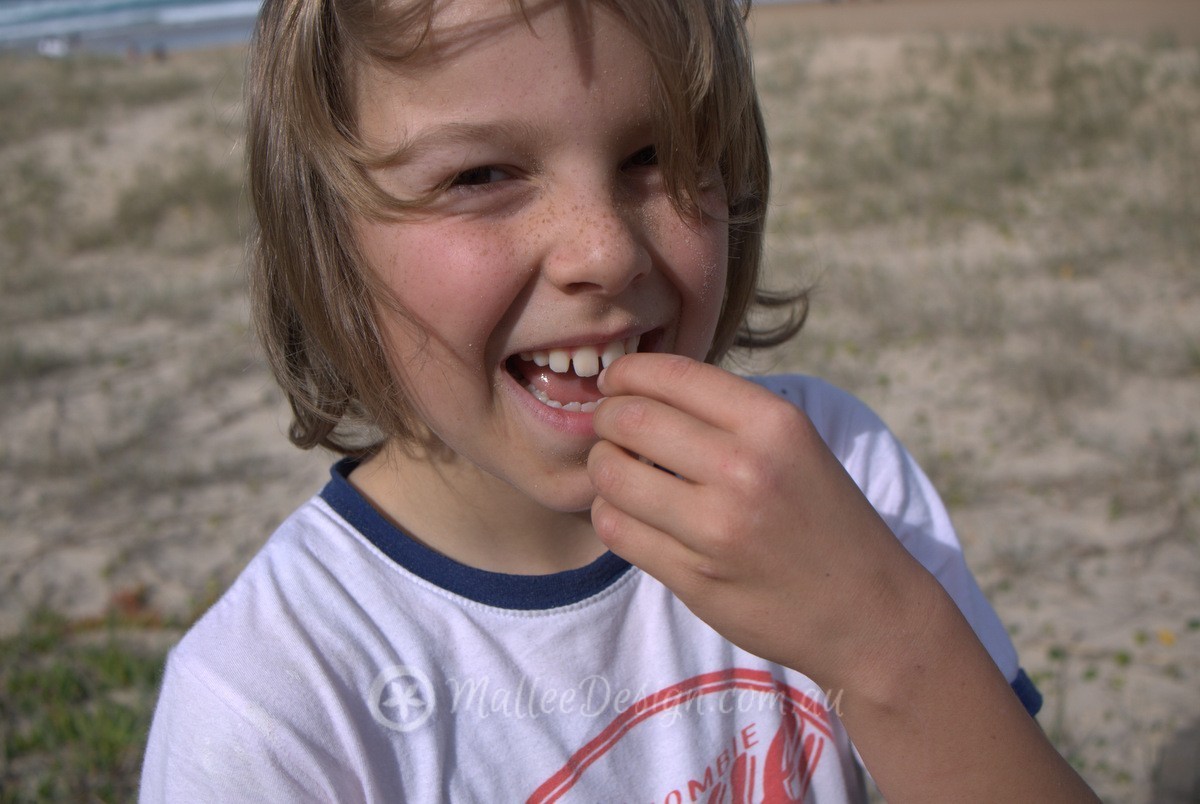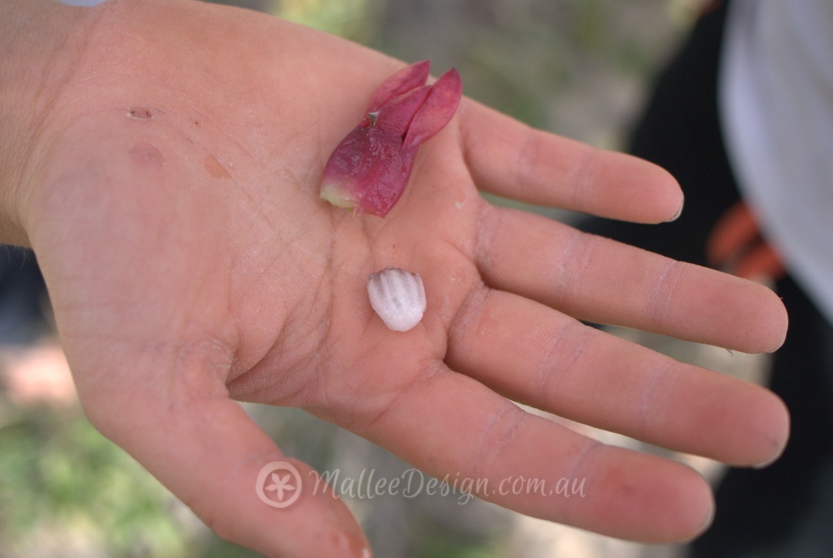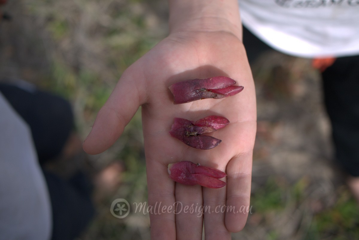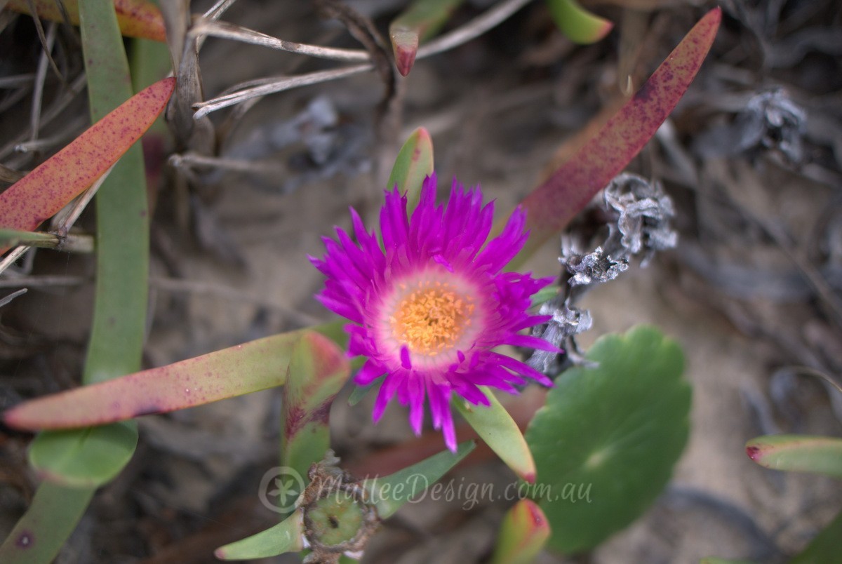 Carpobrotus or ‘Pig Face’ is one of my favourite bush foods to eat, it tastes like an over-ripe Kiwi fruit with a salty edge, delicious! This morning as we were rambling through our local sand dune and beach my son found a pig face fruit and what do you know I had my camera handy 😉