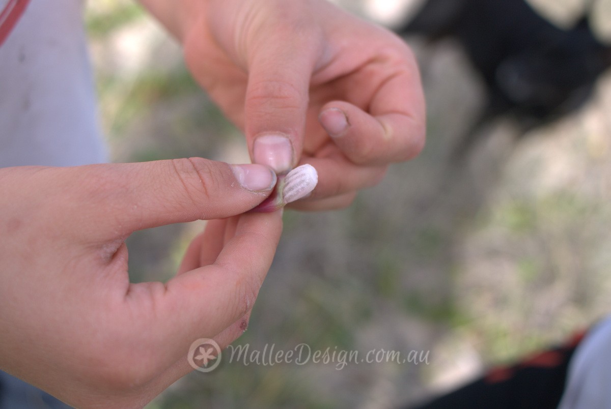 Then you eat it, yum, yum!!! a great snack to be foraged after being tossed about in the surf 🙂 Enjoy!