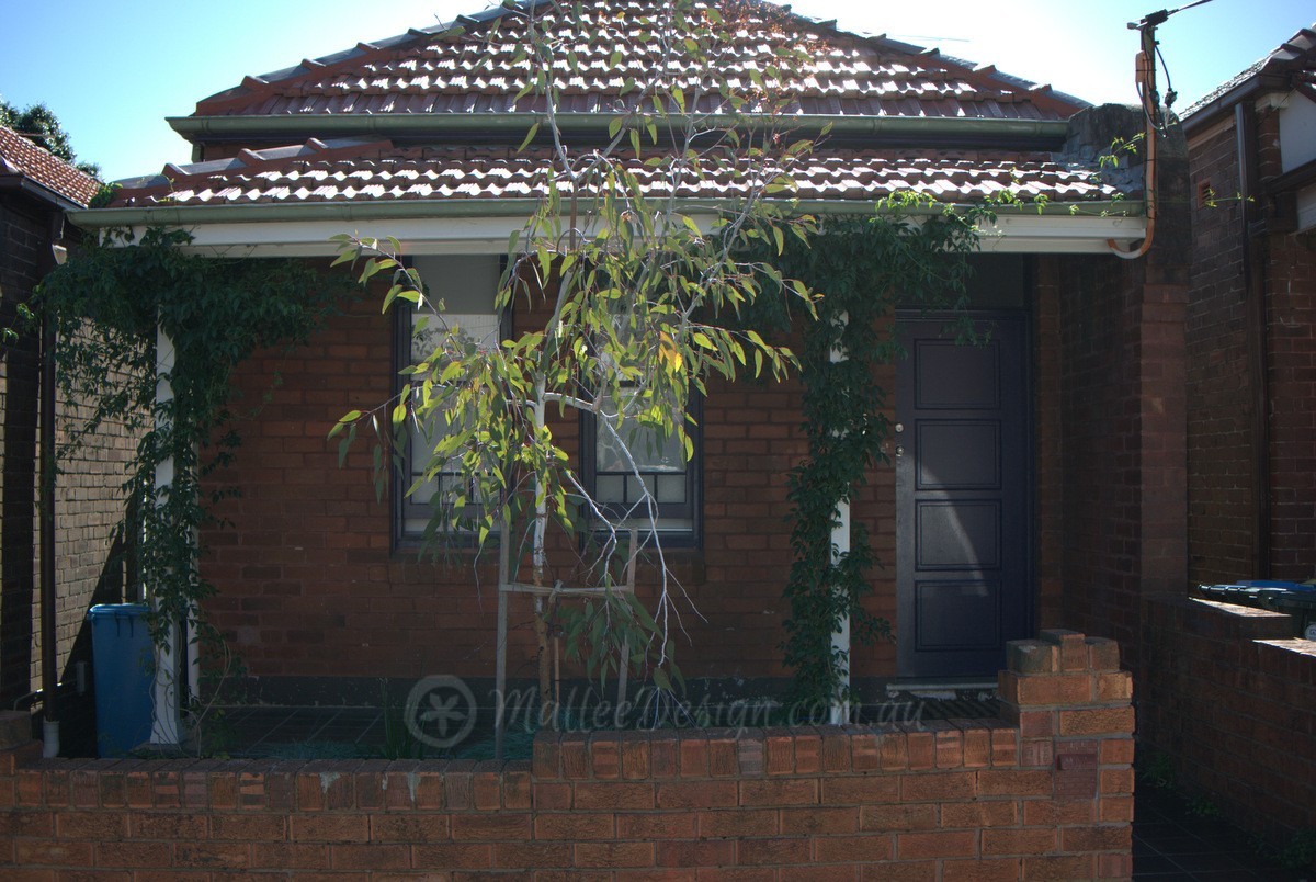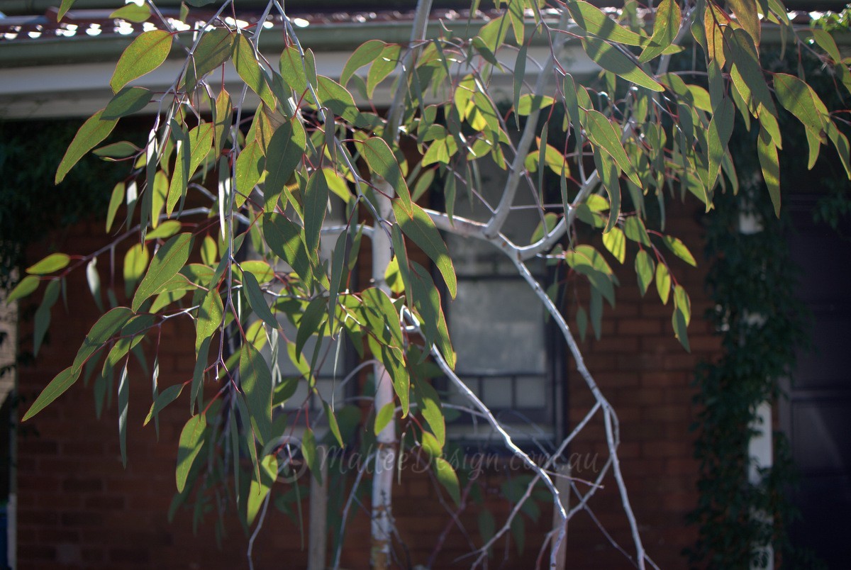 The front bedroom window will soon have screening from the street provided by the Eucalyptus caesia, which forms a soft weeping small canopy and if pruned will remain fairly thick.