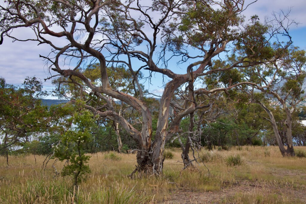 So as I wander back into Geilston Bay, down memory lane, I would like to introduce you to my weather-beaton friends Eucalyptus viminalis. There are some amazing tortured specimens lower down the slope, closer to the river, which I like to check in with whenever I am in the neighbourhood.