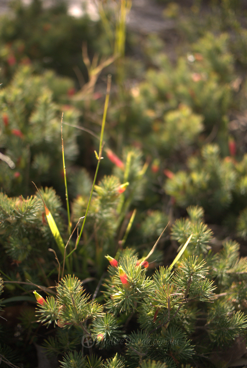 This little spiky ground cover is Astroloma pinifolium, a dense low growing pine leaved native to the coast of New South Wales, and Victoria.