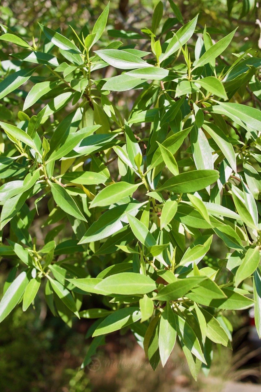 The leaves are medium to large and are somewhat fleshy like many Myoprum species. They are a luscious bright green and make an excellent privacy screen. Perfect for planting next to unwanted neighbouring views.