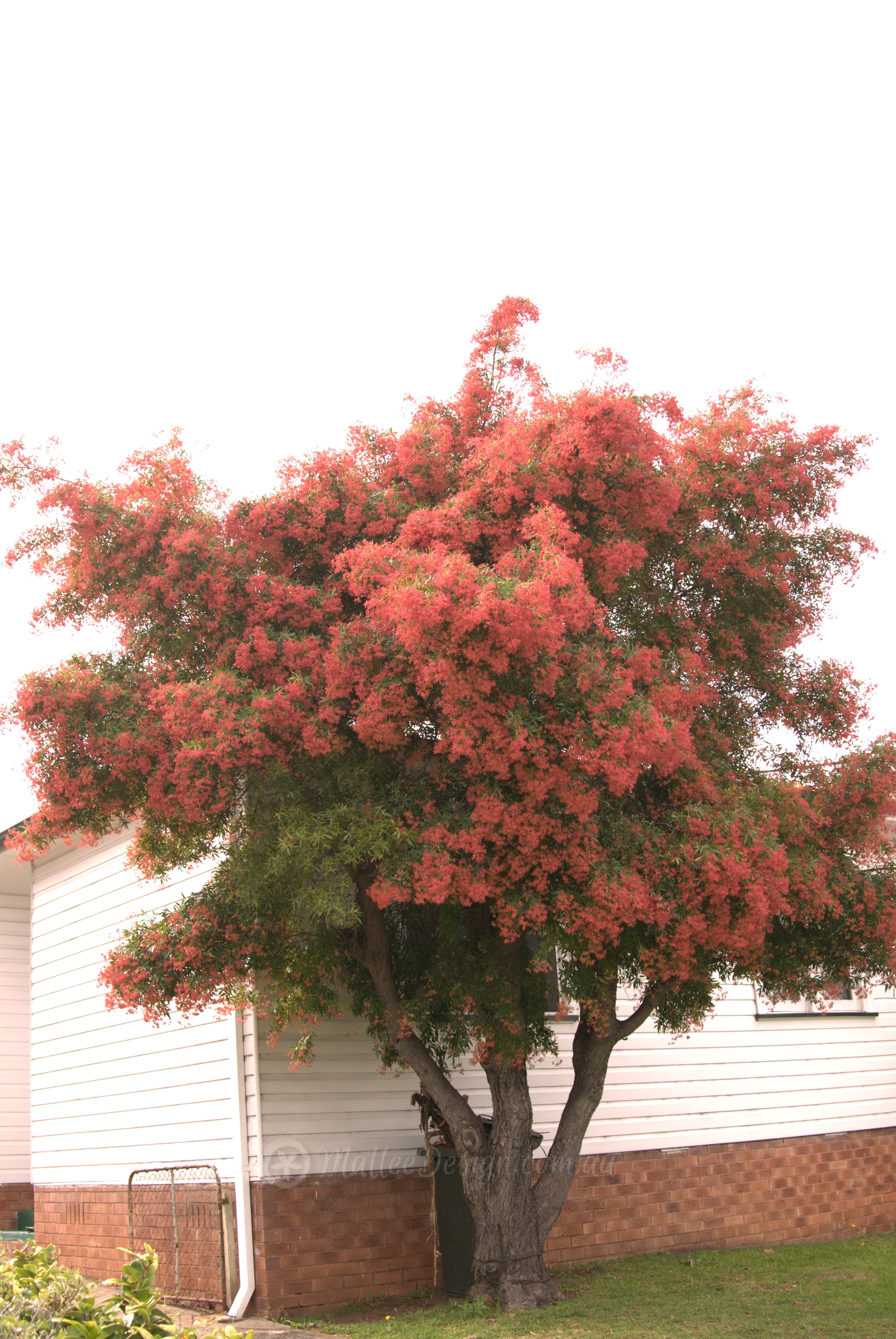There are plenty of sizes available now from the shrub form ‘Johanna’s Christmas’ which is supposed to only get to a metre (really?), then there is Ceratopetalum ‘White Christmas’ where the calyx lobes remain white to green in colour throughout the flowering and seed developing period. Galahs and other parrots will sometimes feed on the calyx, which can be a more magenta-like red or pink in hybrid species.