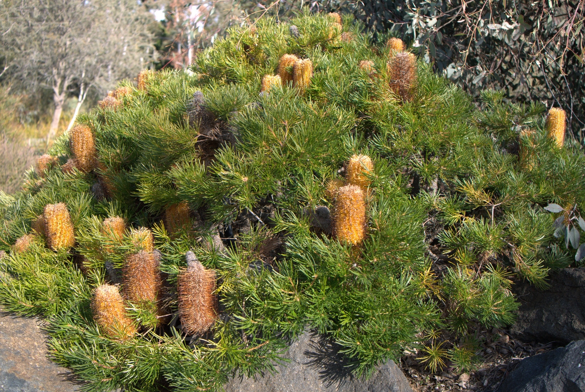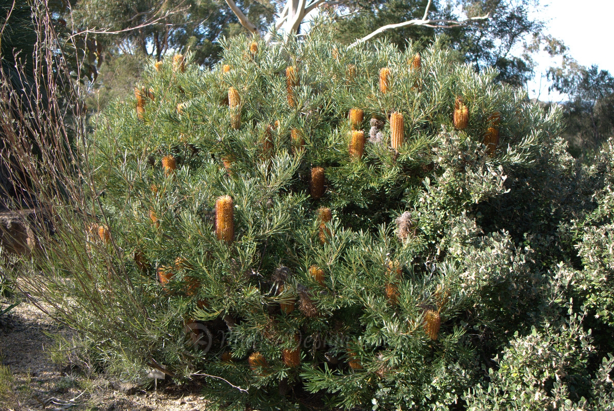 There are many dwarf forms of Banksia spinulosa, so many it can be quite confusing and seem a little ridiculous when it comes to choosing one. There are slight variances in the foliage, the flower colour, the flower size and in the size and shape of the shrub itself. For most people these difference would seem minuscule, especially when you are trying to choose from some little plant 10cm tall in a pot.