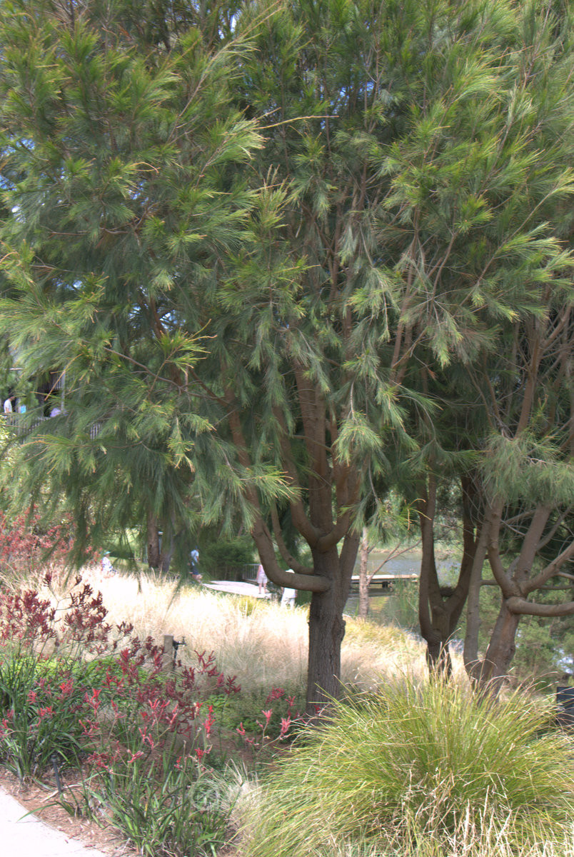 In fact there are many trees planted close to the building, a cluster of Allocasuarina verticillata completely wrap themselves around the house as a wind break, creating a gentle understory filled in with grasses.
