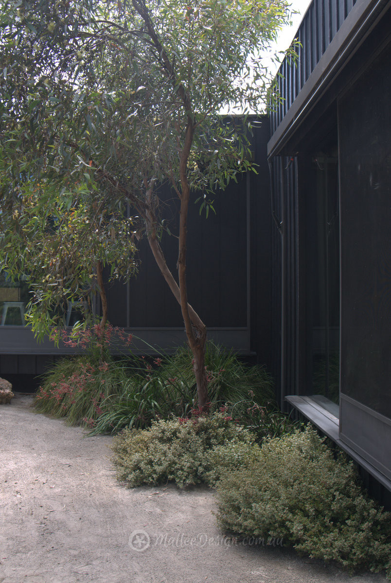 The use of the Eucalyptus macrandra planted close to the house is very clever, lets face it the whole garden is very clever, it creates garden views from inside the house and makes the house feel as though it is nestled in the garden, almost like the garden came before the house…