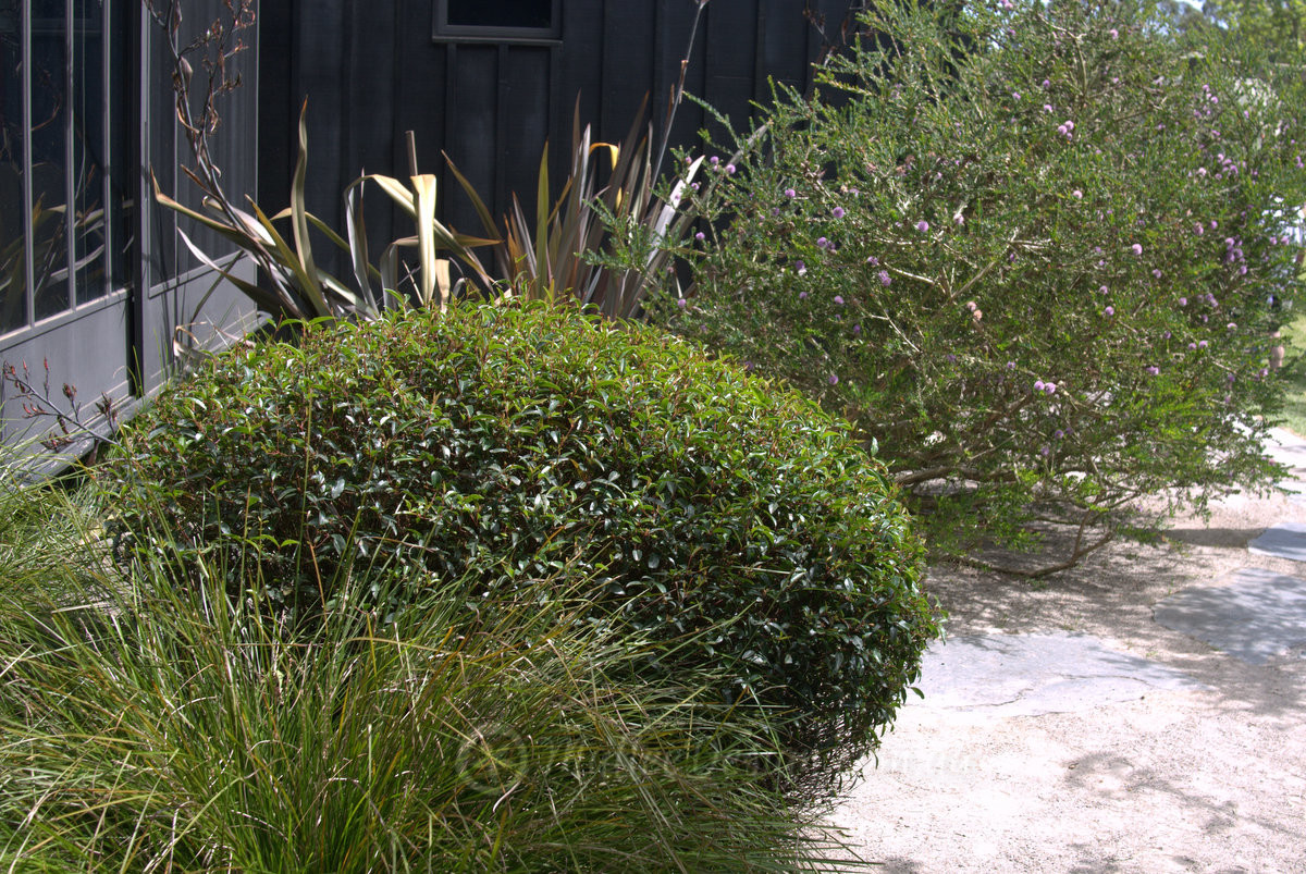 The planting around the house was a little more formal, with clipped Correa baeuerlenii spheres, gravel pathways and some more exotic species. In the images above you can see Lomandra ‘Tanika’, Correa baeuerlenii, Melaleuca nemophila and Phormium tenax.