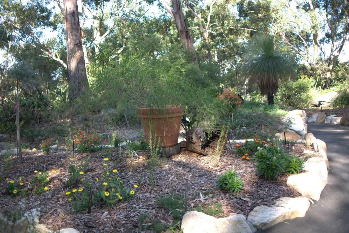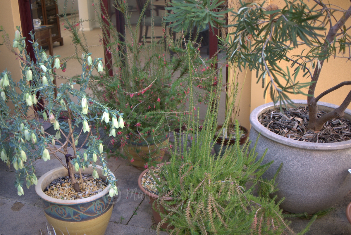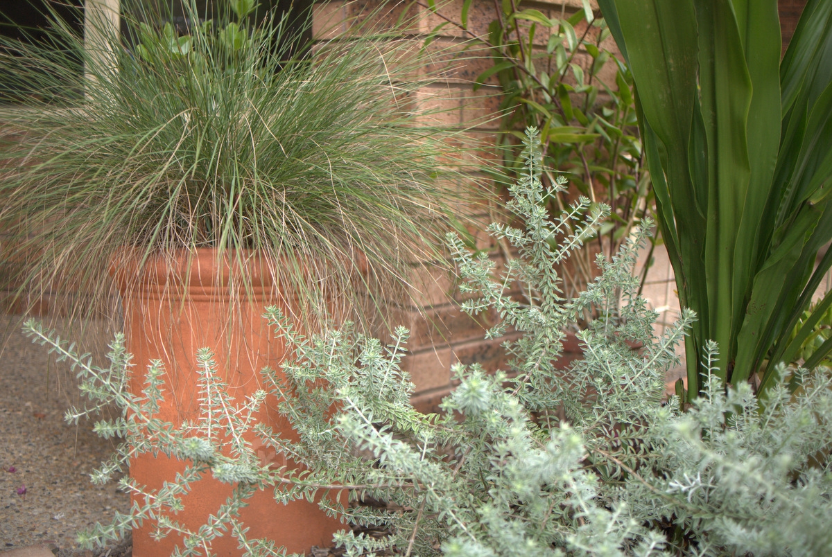 I think that this topic will be a continuing theme as I regularly see excellent examples of native species growing in pots or containers everywhere I go. There are many reasons for growing native plants in large pots, one of the main reasons is to increase drainage and therefore be able to successfully grow plants that would otherwise die if planted in the garden, a good example is the Ptilotus ‘Joey’ in the image above which is an arid desert plant.