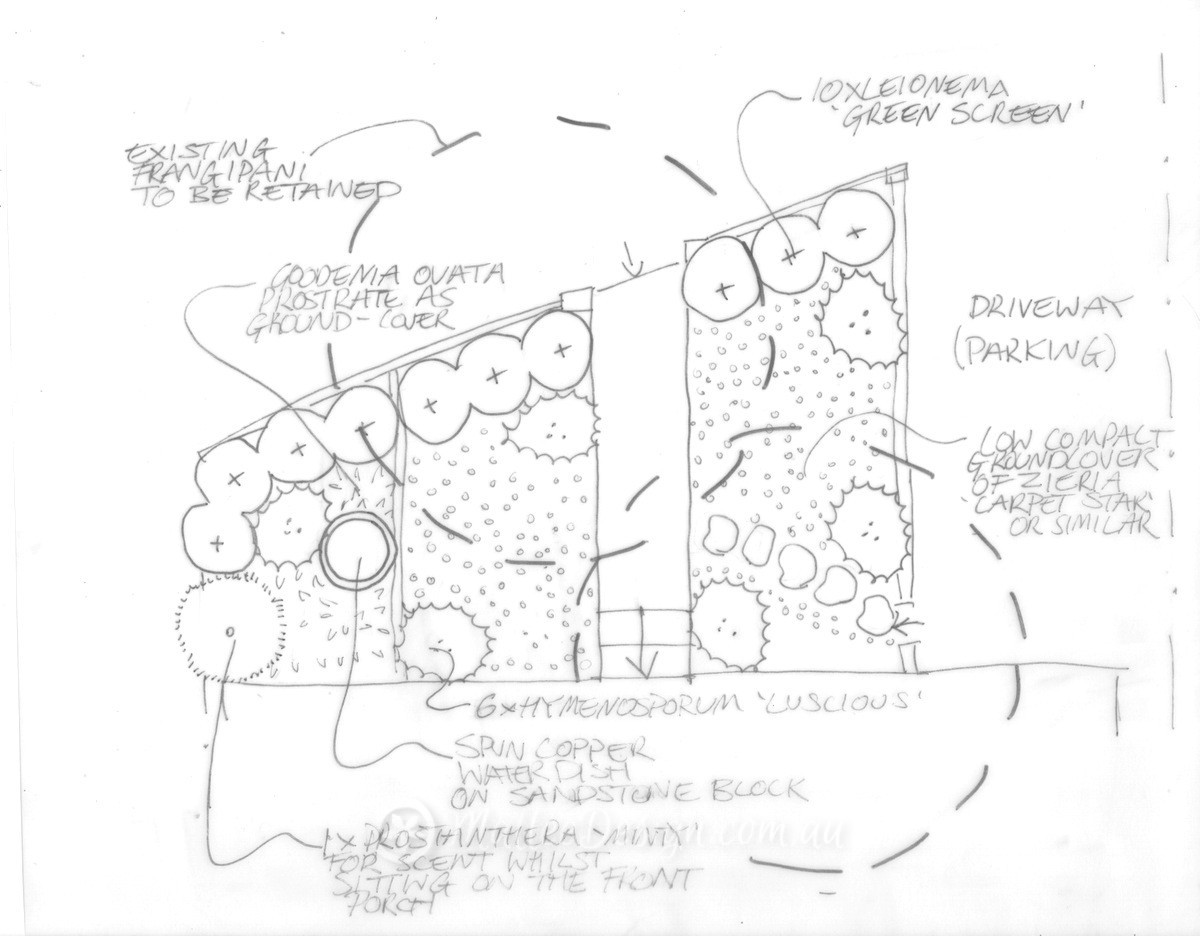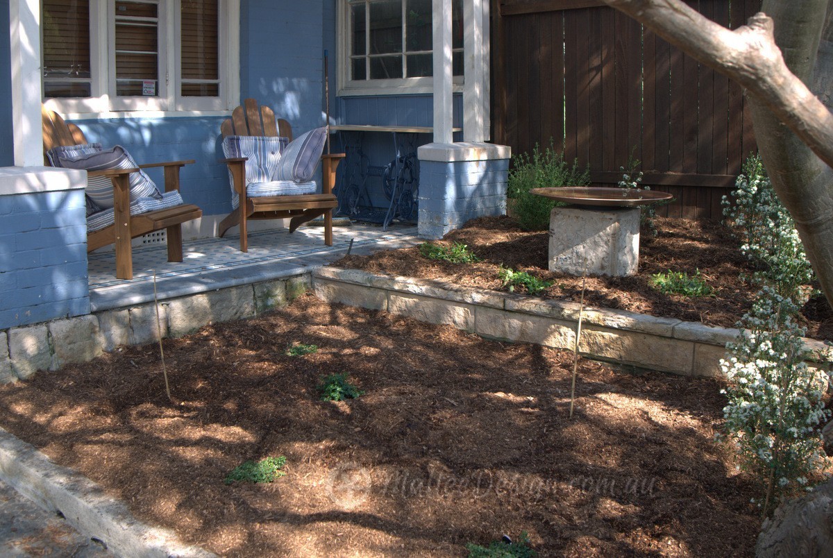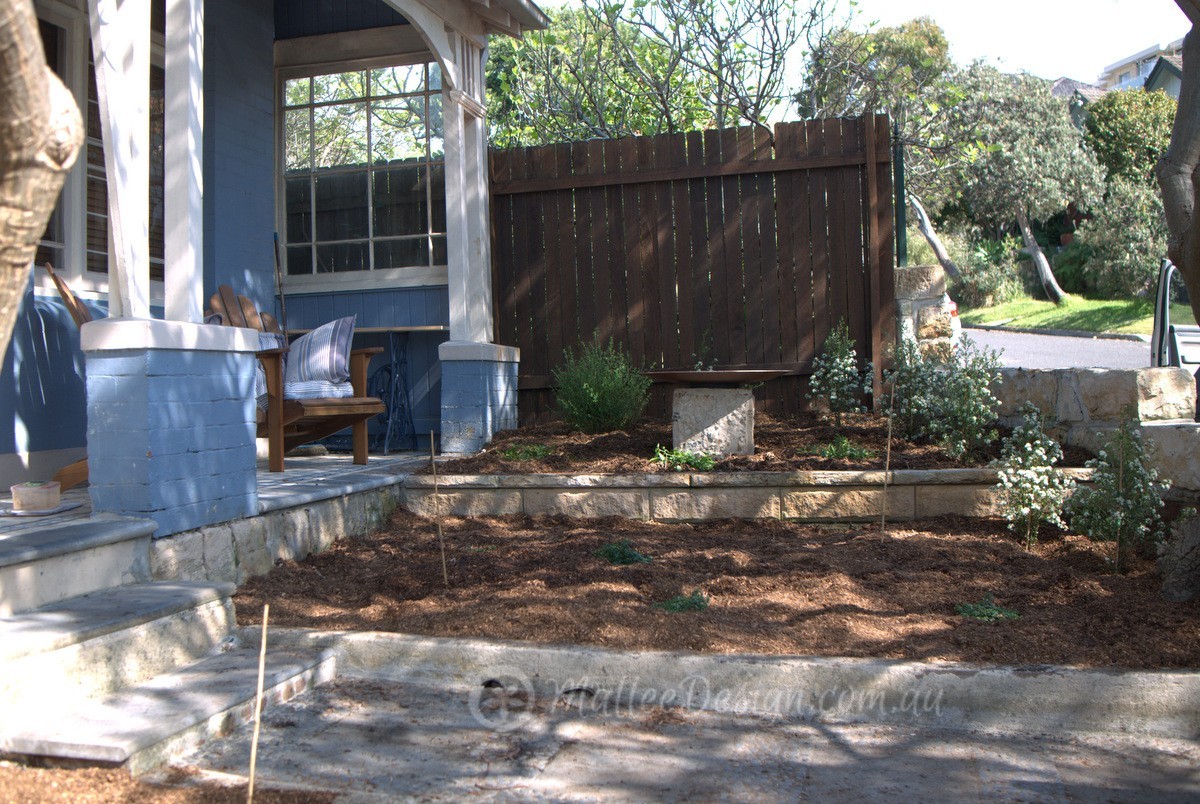 This garden was a simple consult and then a couple of weekends of intensive clearing out by the client, then I came in for the fun part 🙂 Two large Frangipani trees shade the west facing front garden in Summer but let the well needed sun through in winter, it is practically illegal to remove these iconic trees in the eastern suburbs so plants needed to be selected that would cope with their deciduous nature.