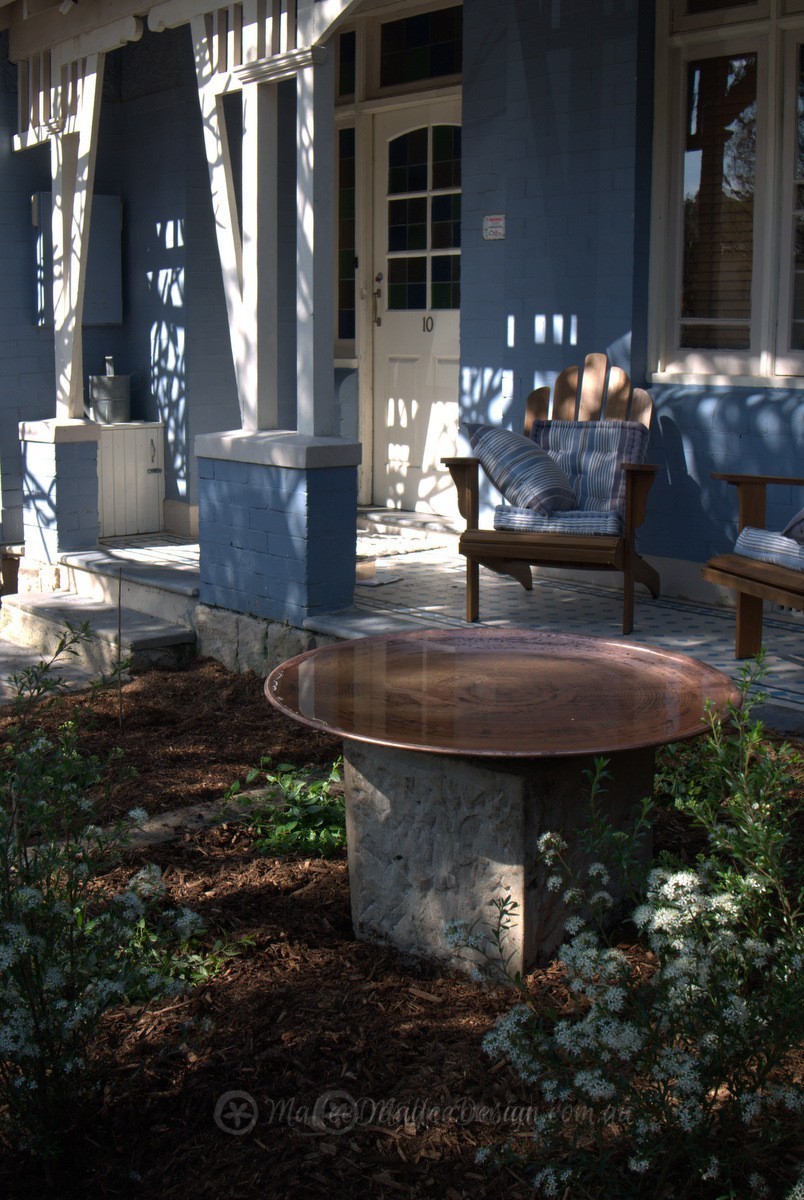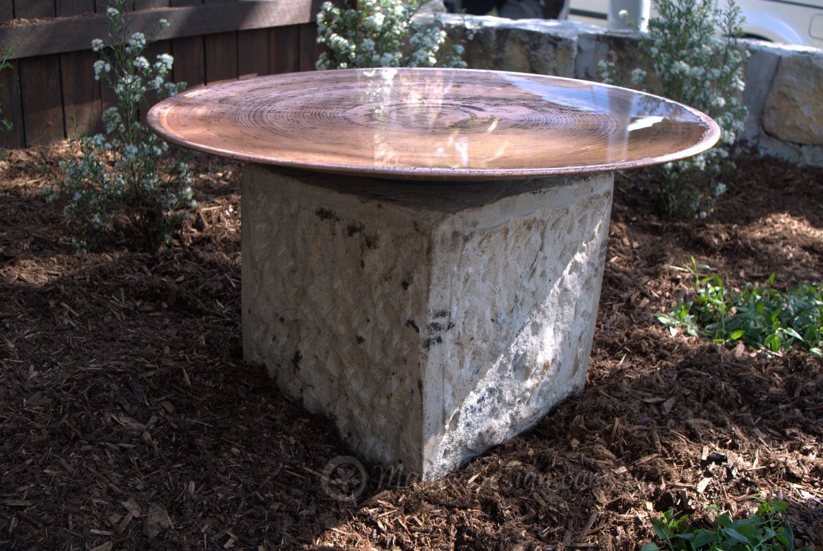 I am very happy with the water dish placed on a substantial sandstone cube, the large spun copper dish give an element of calm in the small space. The water can be viewed whilst seated and mounted on the low block doesn’t dominate.