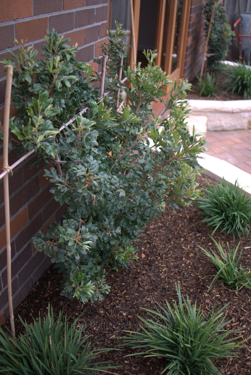 The garden is in three fairly well defined sections, the photo above is of the rear, which is a small area in a formal style. I relished the chance to put some natives into a more symetrical lay out and must admit I can’t wait to see some of these neatly clipped.