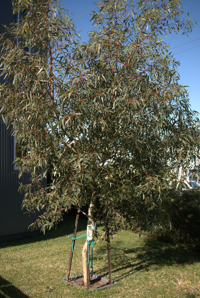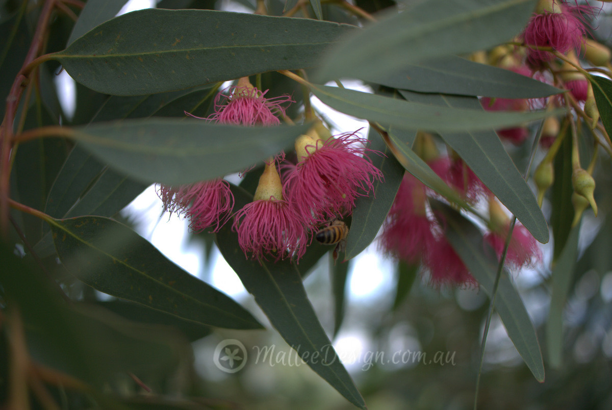 Eucalyptus ‘Euky Dwarf’ covers itself in small pinky-red flowers in spring through Summer, these blooms are great for small birds and bees.