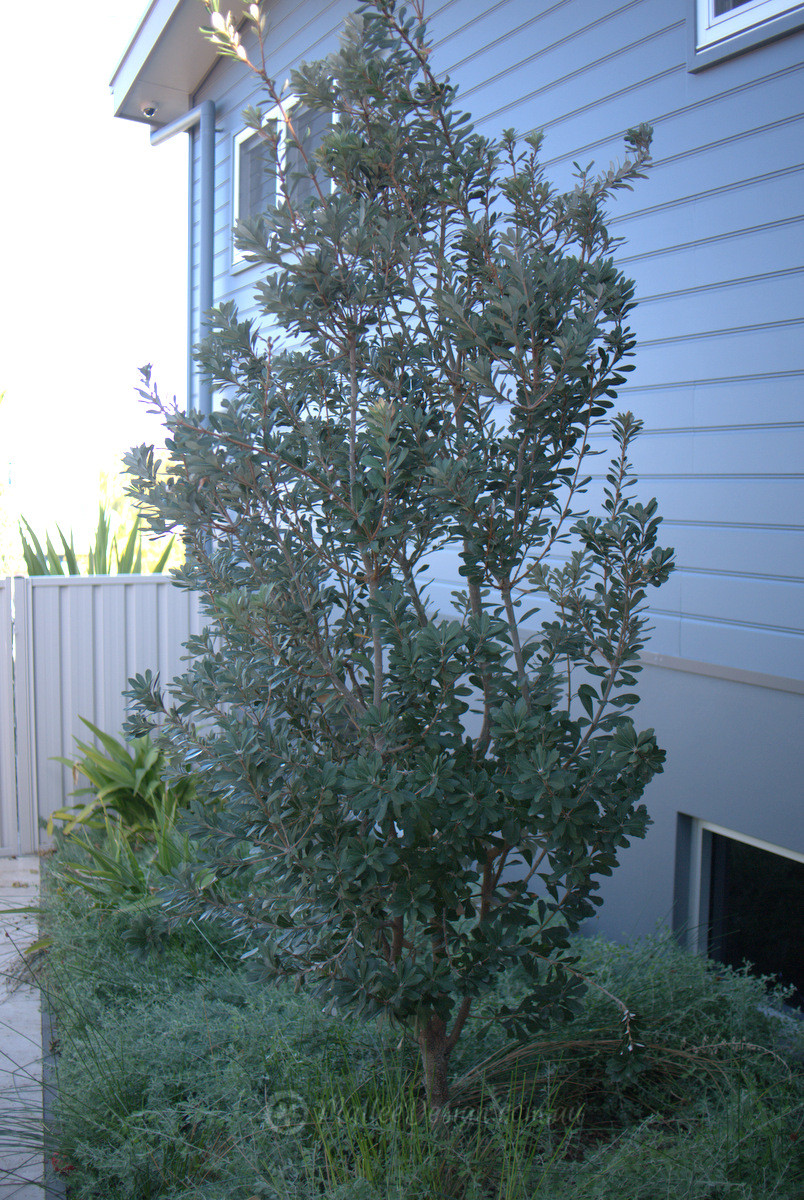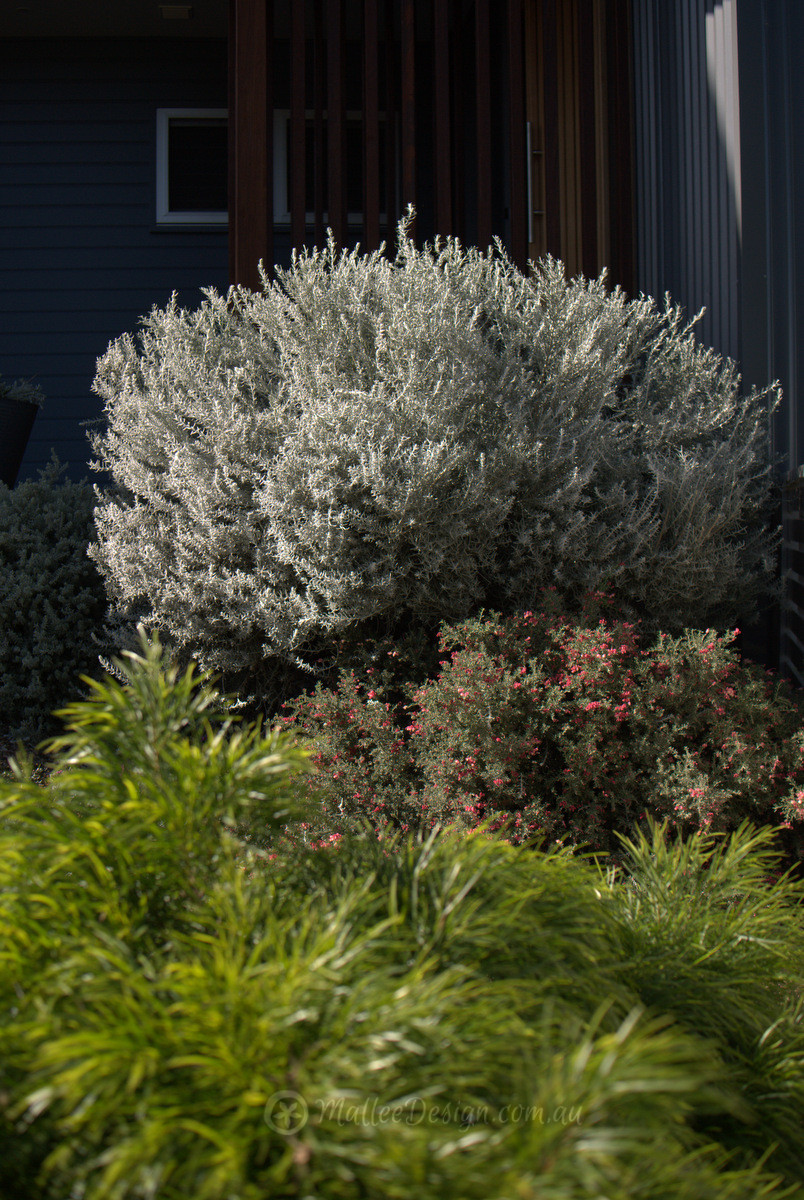 The other shrubs I am very happy with are the Eremophila nivea Grafted, there are 3 of them in this front garden and they all are extremely happy and full. I am pleased that they cope with the strong winds even though they are grafted, I’m sure that the regular pruning helps.