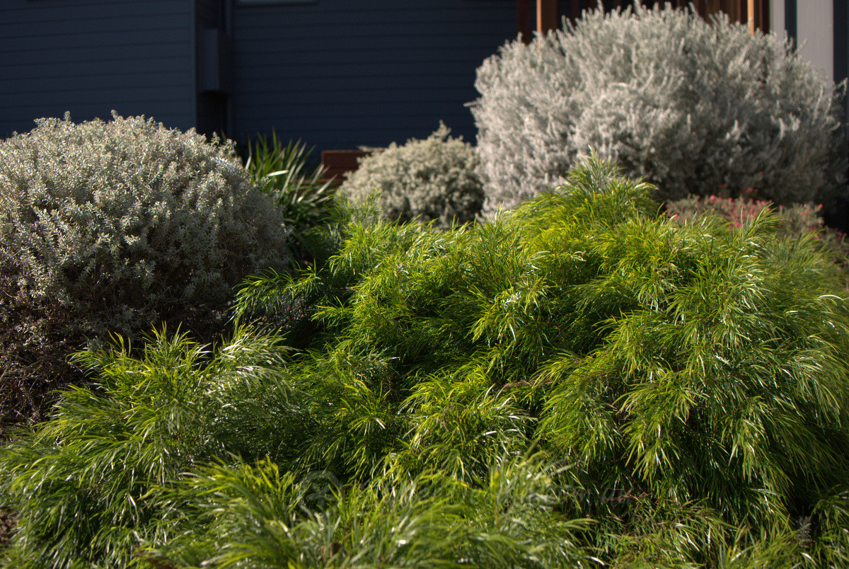Usually I do a basic tip prune on the Westringia, Eremophila and Grevilleas, to keep them nice and dense but to also help them withstand the strong coastal winds in this garden.