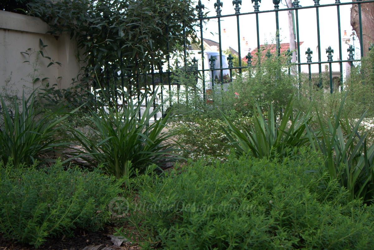 I went back to this front Terrace garden in Glebe a couple of weeks ago to do some follow up work; re-mulching and pruning and I was struck again by how quickly the garden is filling out, it is still under a year old and already you can see the structure as the plants begin to fulfil their various roles.