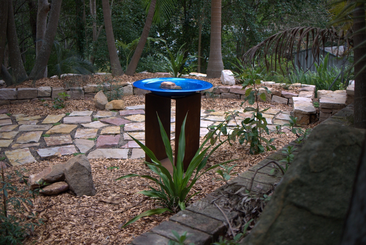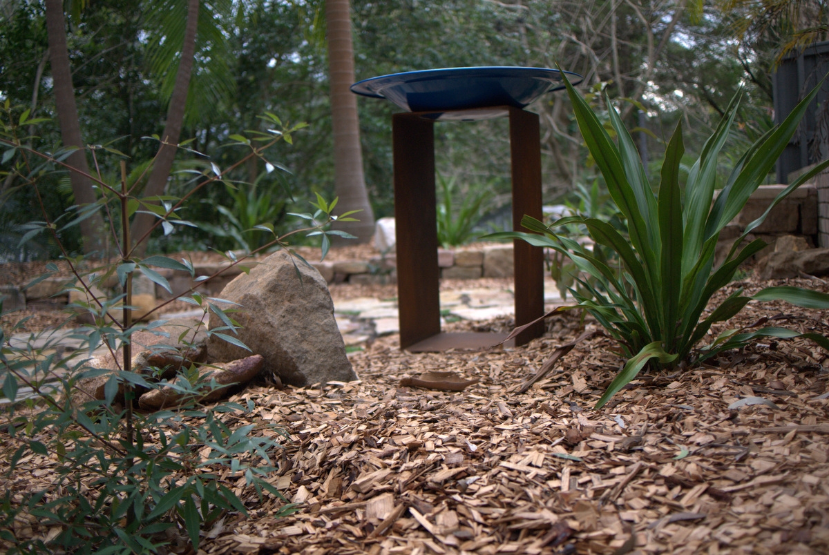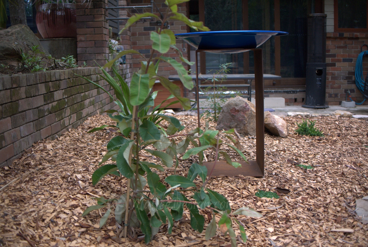 I installed a large pedestal birdbath in the most central part of the garden, it can be viewed from the patio above, the kitchen of the flat and also from the client’s offices on the second floor. A Banksia robur will grow up and provide easy access to the bath for the birds.