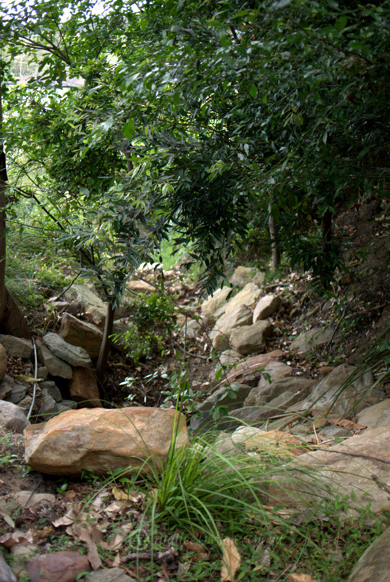 The rock work and weeding carried out in the creek itself has also been quite successful, it was once choked with Pollia and now is stabilised with large rocks and native grasses.