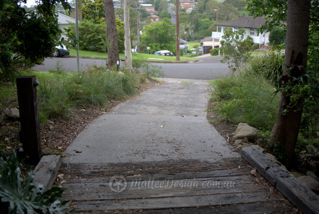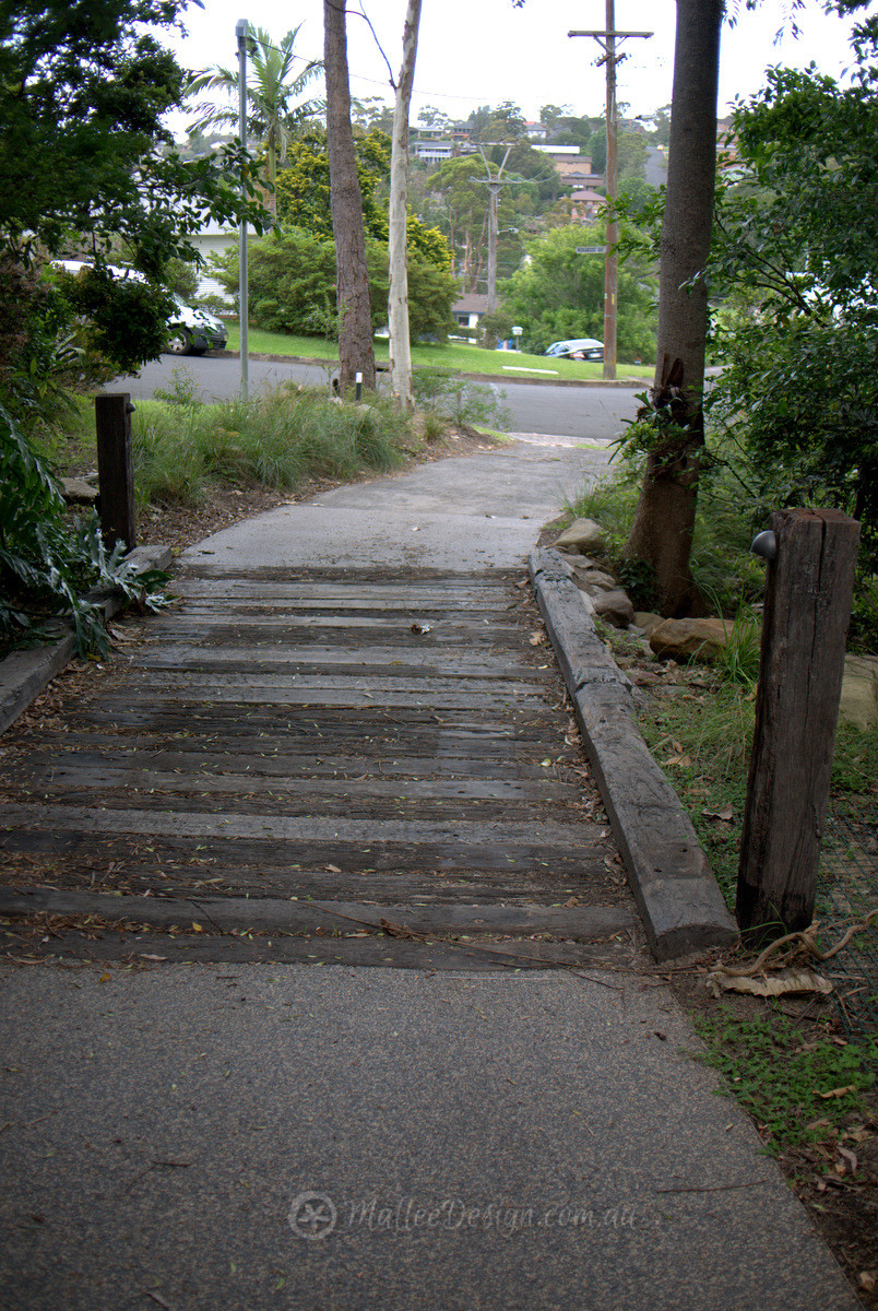 The recycled sleeper driveway is settling nicely into the landscape and looking like the bush bridge over the creek as intended.