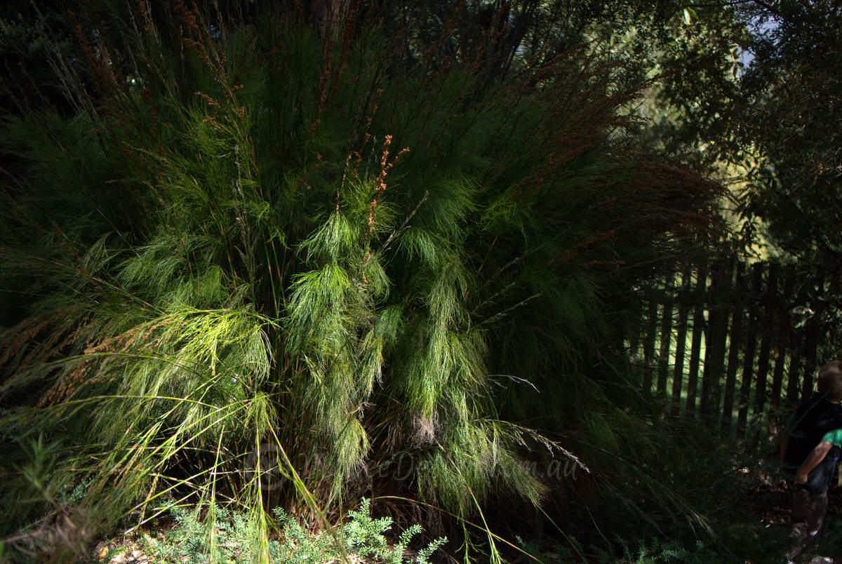 It has a wonderful vase shaped habit when young, and new growth comes up like miniature bamboo stems. When it is flowering and setting seed it is covered in a reddish brown haze on the top.