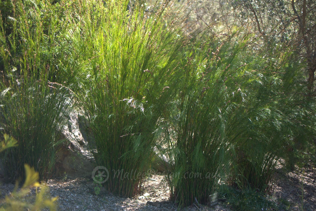 Baloskion tetraphyllum can get quite massive like some of the exotic ornamental grasses that I also love. It will grow happily as a wetland plant or just in heavy moist clay, just make sure you give it enough space and it will reward you with its feature worthy habit.