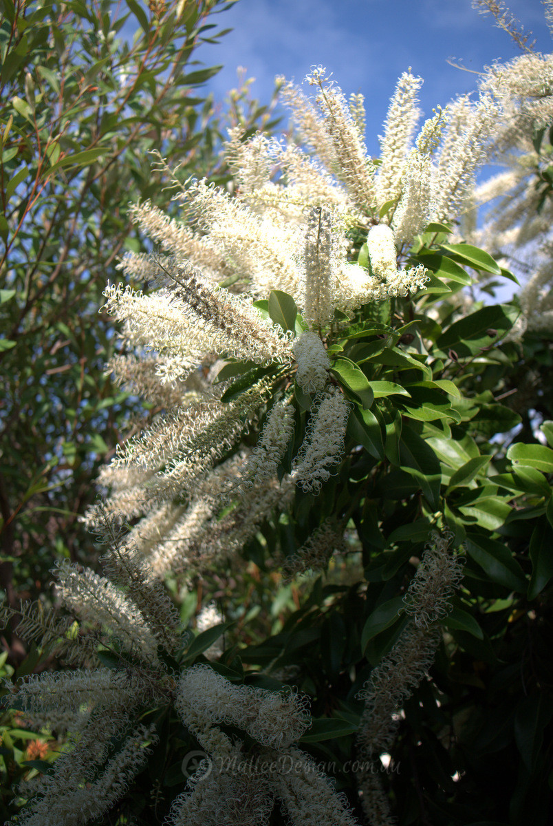 In the image above I have managed to capture some of the bees feeding on the nectar rich flowers. Honey eaters and insectivorous birds are also attracted to this tree.