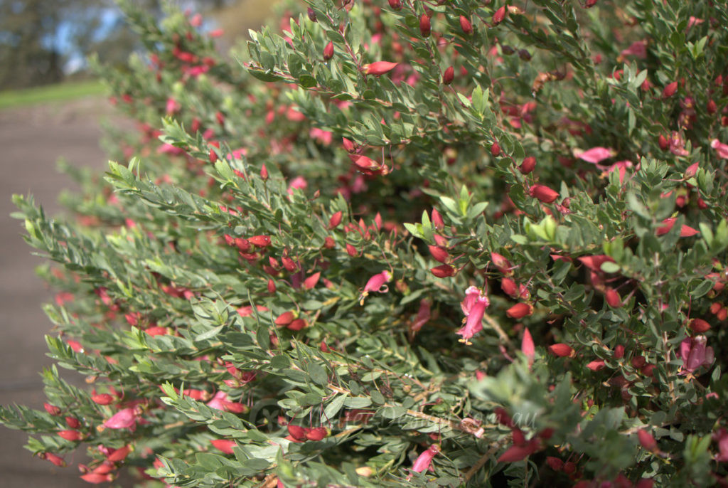 These images are of Eremophila maculata ssp. maculata, which has been pruned into a lovely low hedge or border planting along a pathway, the number of flowers on these shrubs is ridiculous! Eremophilas are wonderful plants for attracting bees and small birds, they respond well to pruning and shaping and flower mostly during the Winter months.