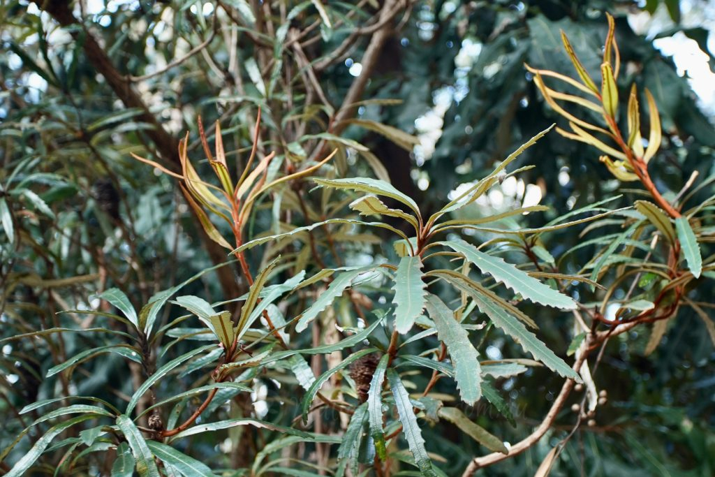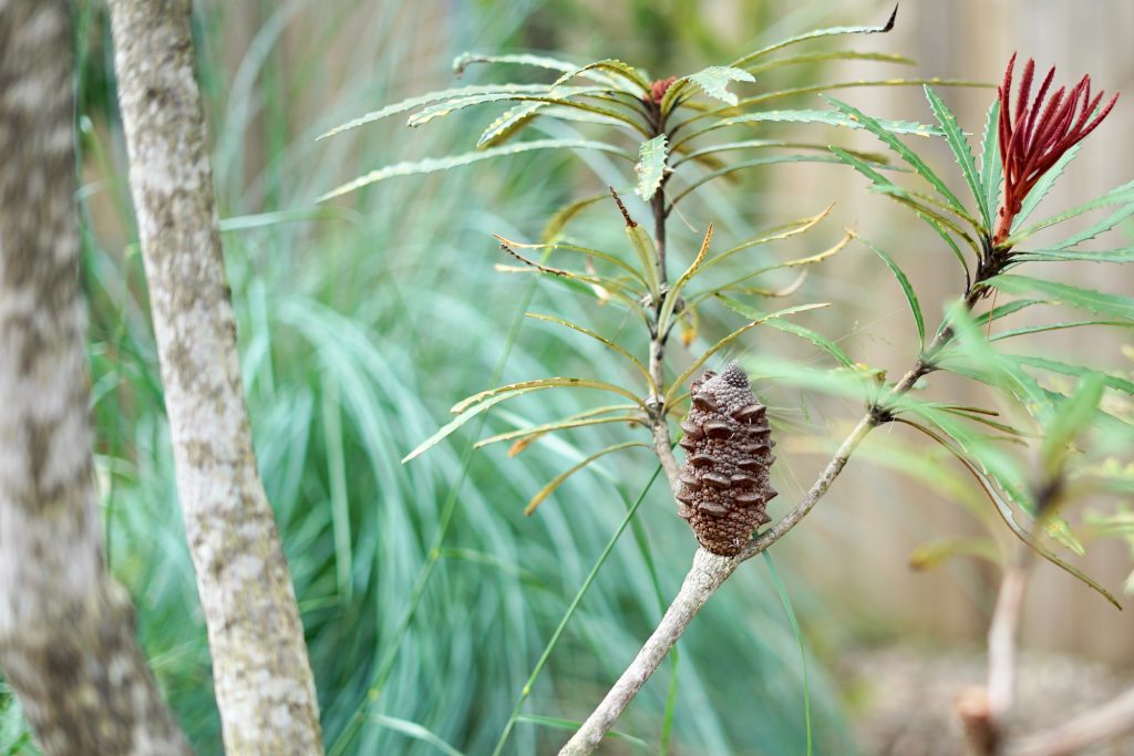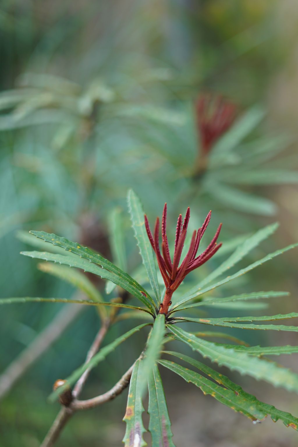 This Banksia not only has beautiful flowers but also eye-catching bright red new growth that is covered in tiny hairs giving it a velvety texture, similar to the new growth on Banksia robur. Banksia plagiocarpa has great ornamental potential in the garden, as it can be grown a a large shrub or can be shaped into a small feature tree, being a Banksia it is very forgiving to pruning and will happily reshoot from the rhizome.