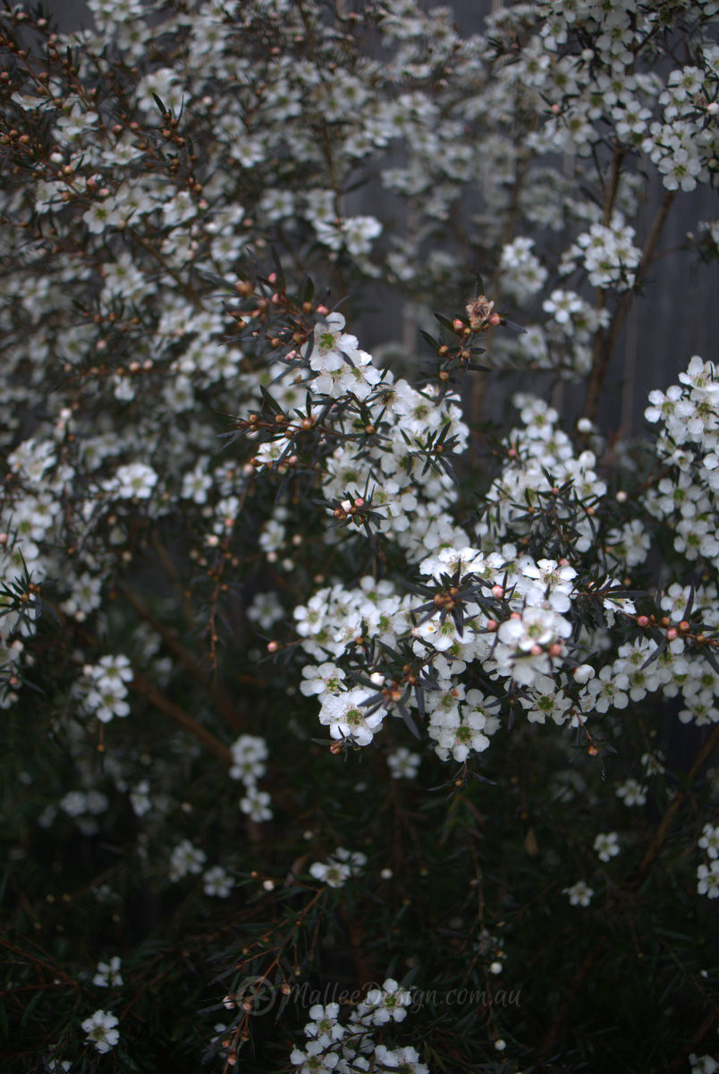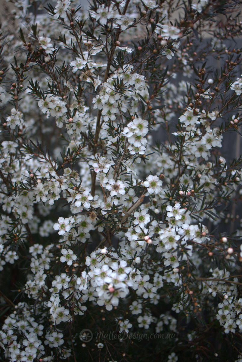 Tea trees flower in summer and this species is profuse in bloom, attracting birds and bees alike as well as providing shelter for smaller birds.