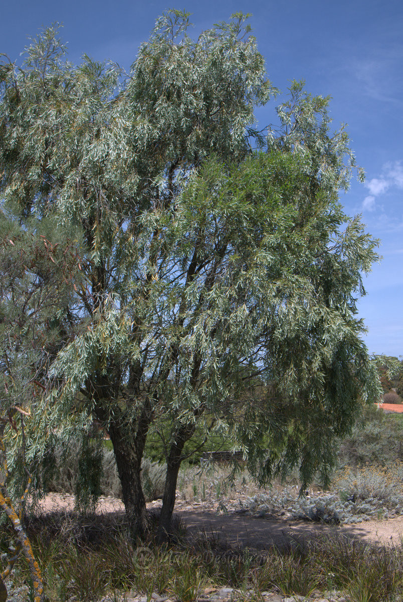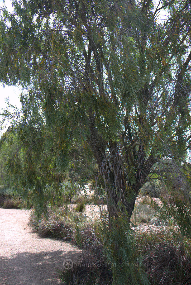 The specimen in these images is growing in the Cranbourne Botanic Gardens and has been allowed to get to its full height of a small to medium tree, growing between 6 and 10 metres. It makes a fantastic feature tree and is also good for screening due to its dense weeping habit, it can easily be pruned and kept as a large shrub.
