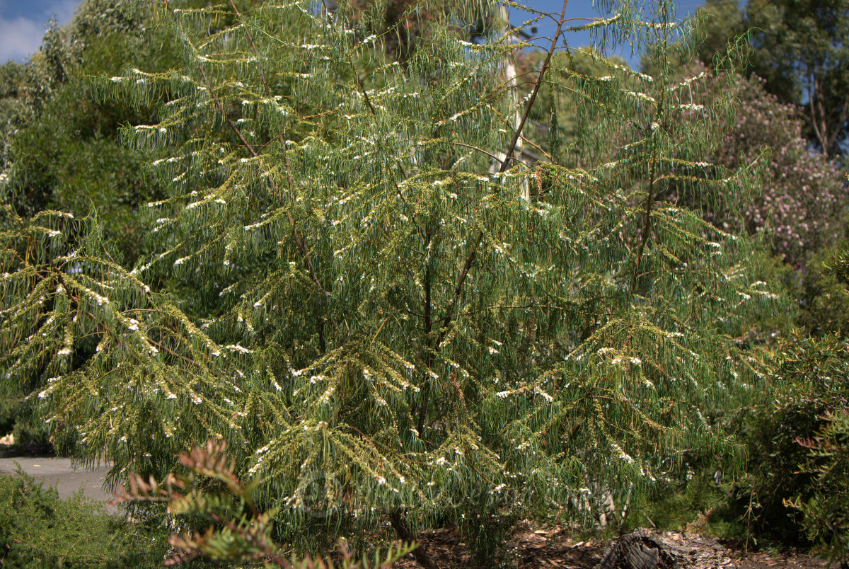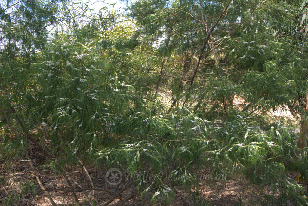 Branches are spreading and leaves are very long and pendulous, they hang from the branches giving the plant a droopy and somewhat wilted appearance. This is far from the case as plants have proved to be hardy, drought resistant and tolerate frost.