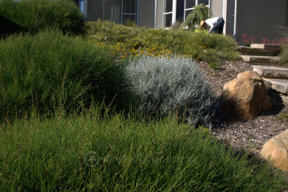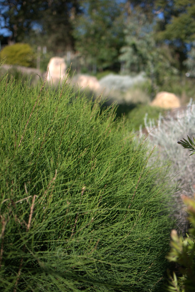 I have planted them with Leucophyta brownii which has a similar habit but is a bit smaller and contrasts well with its upright silver foliage. They also look great with soft weeping grasses, dwarf Banksias and upright shrubs like Adenanthos and Calothamnus quadrifidus. I think they are suitable as a ‘backdrop’ plant, and also make a fantastic screen.