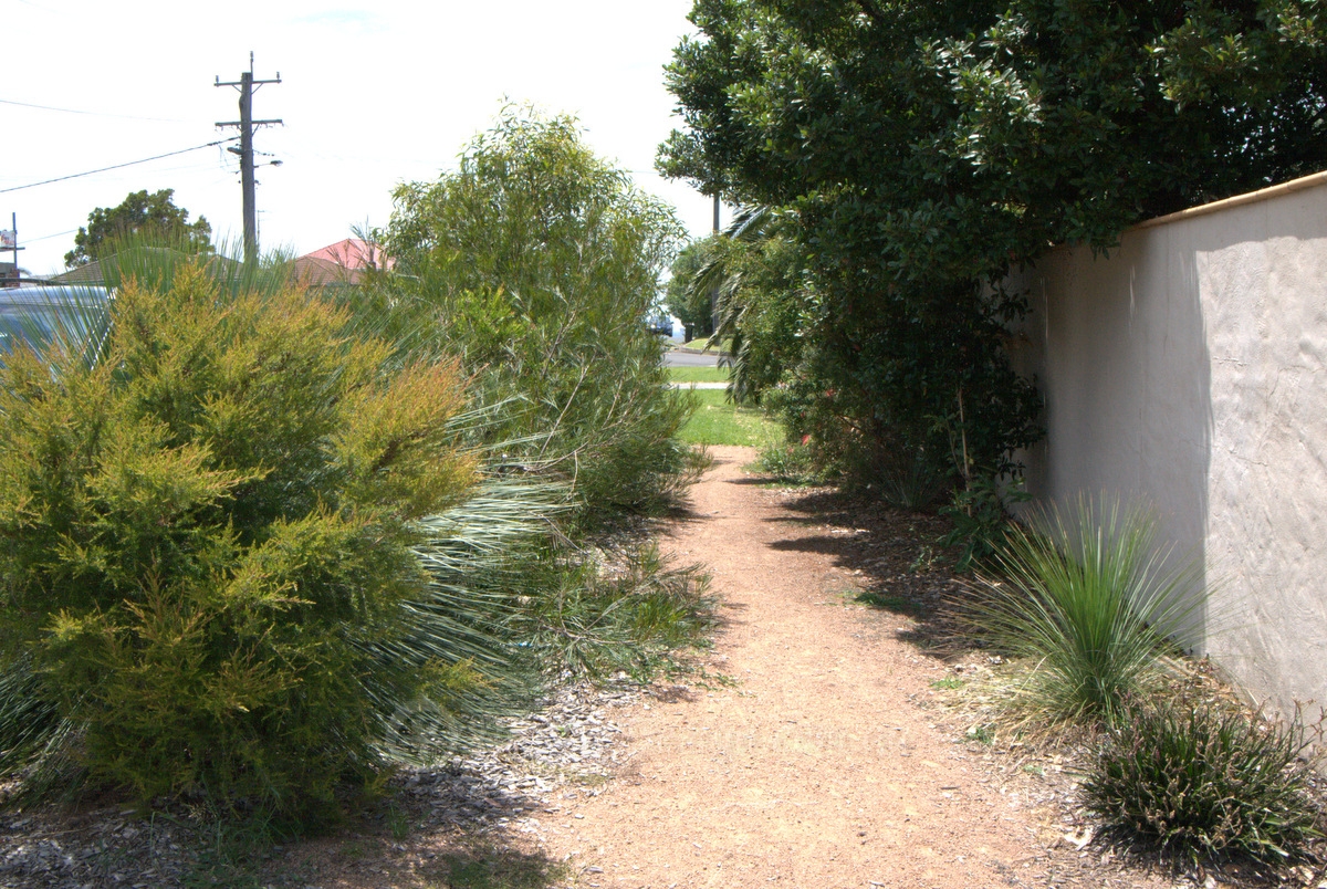 This verge garden has a number of excellent feature plants in the Xanthorrhoea glauca planted on both sides of the passage way.
