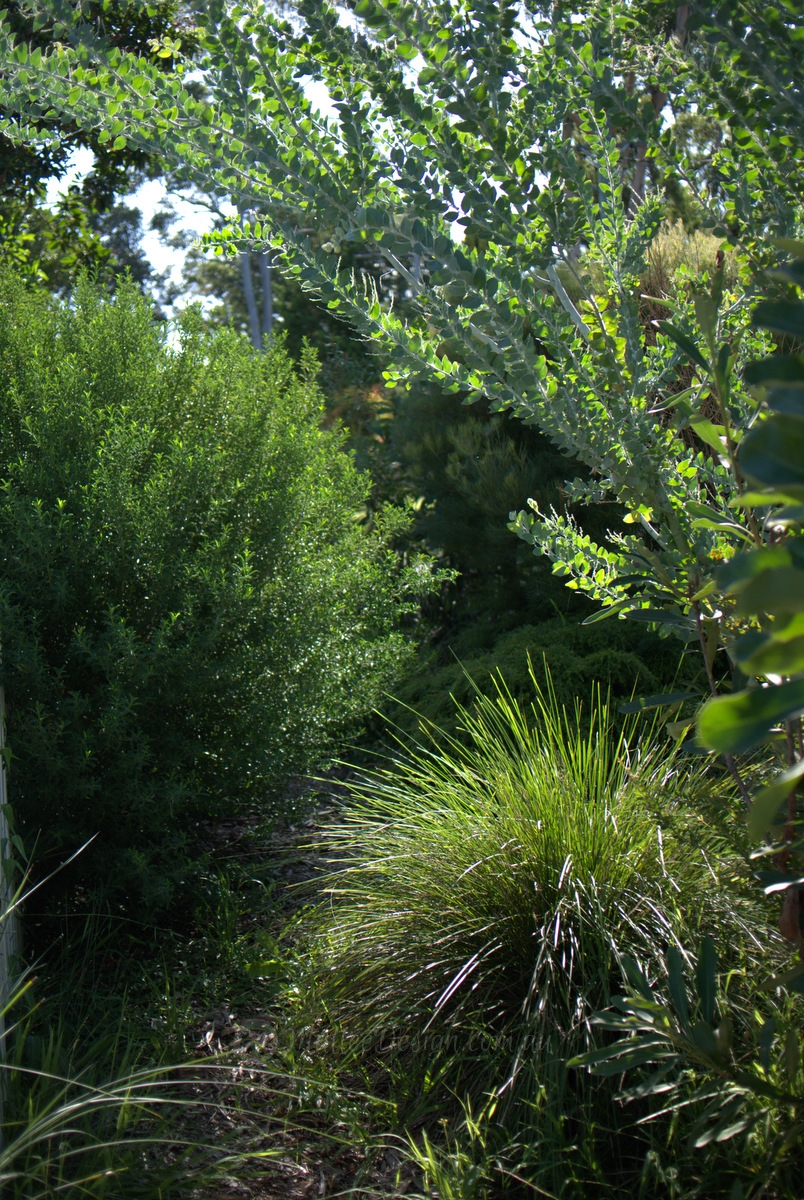 There is a lovely foliage contrast with the Acacia podalyriifolia and the Philotheca sps. and I get the feeling that as the taller things grow up you will be able to pass through the space under their canopy. Just beautiful.