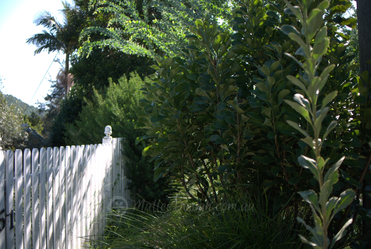 In the image above you can see the Telopea ‘Shady Lady White’ popping its head up behind the fence on the right, and in the image below the other Telopeas just growing like weeds!